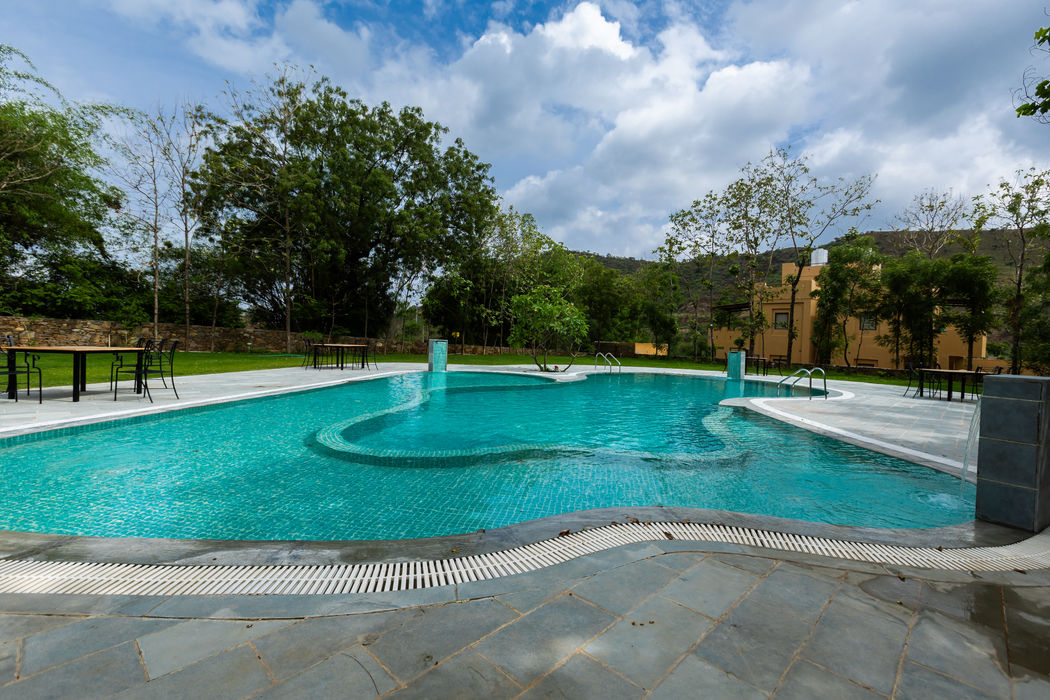 ![Cloudy skies are for lounging by the pool and slowing down, soaking in the beauty of nature in and around Devbagh.